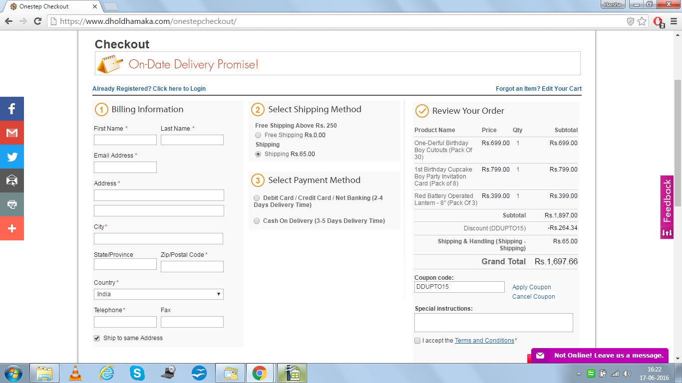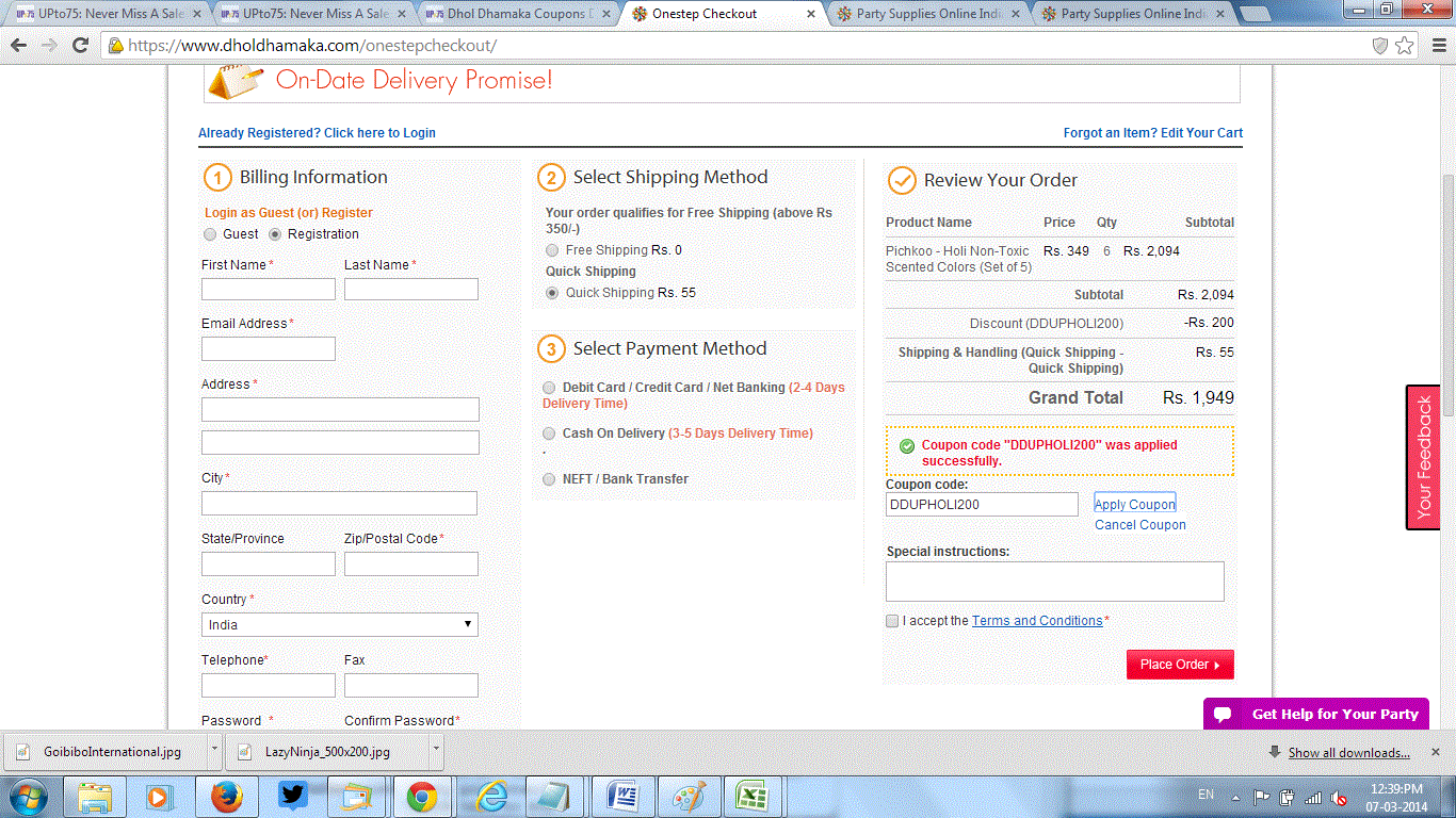 Dholdhamaka Coupon - Rs.200 OFF Coupon Tested on June 17th 2016