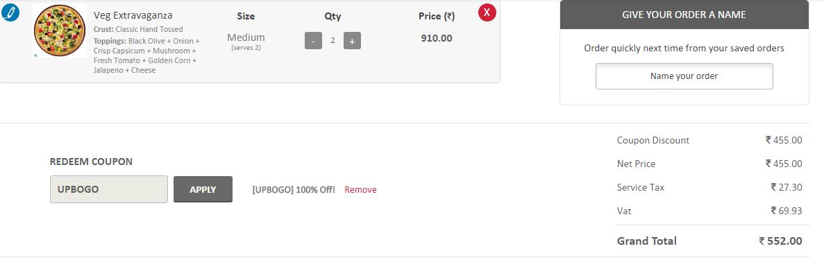 Not Valid on regular, simply veg. and simply non-veg. pizzas, sides, beverages and combos.