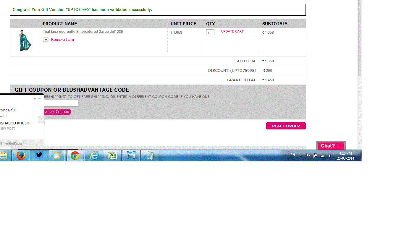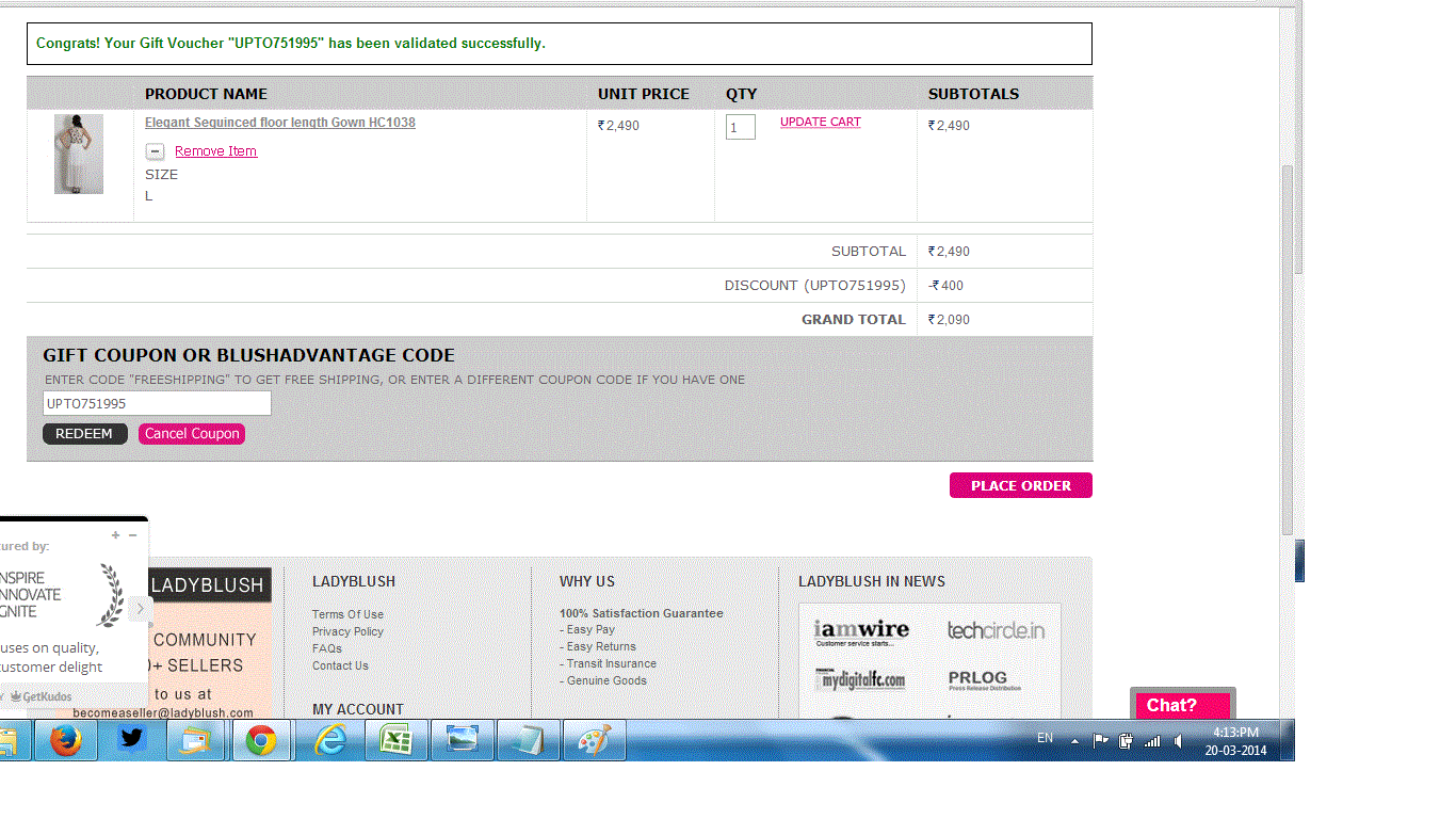 Ladyblush Coupons - Rs.400 OFF Coupon Tested on Sept 5th 2014