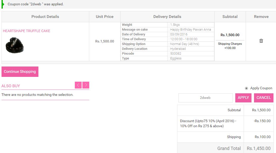 2) Maximum discount for this coupon code is Rs.1000.