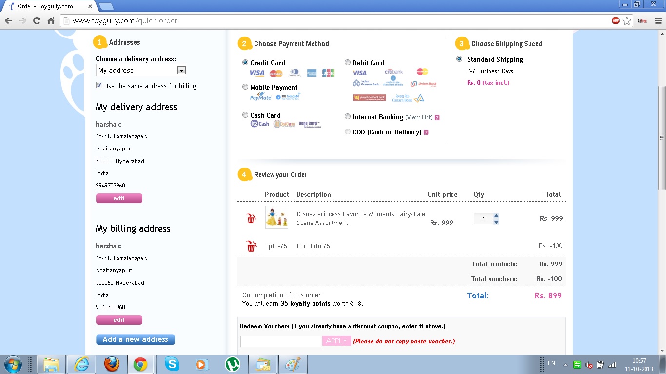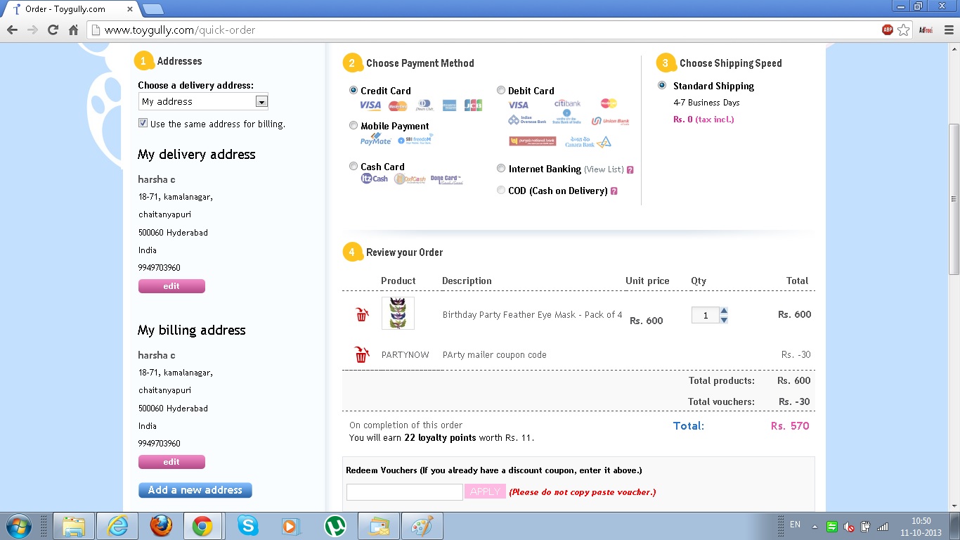 FLAT 10% OFF on Rs.500 Coupon Tested on October 11th 2013
