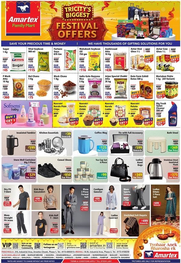 They also have some really good Salons and Spas to give you that gorgeous chic look you have always wanted. Names like Tress Lounge, Headmasters, Blush in Style Unisex Salon, Toni & Guy, Hair Rasierz Salon, Top Notch, Azzaro Unisex Salon, O2 Spa, Blue Terra Spa, Amaira Spa, Tuscany Spa, Aura Thai Spa, Quan Spa and SamaYan Spa invoke trust and comfort! If you are on the lookout for some exquisite tasty bites, their list of restaurants like Garlic And Greens, Virgin Courtyard, Chilli & Pepper, Cafe JC’s, The Café @ JW, Saffron, Barbeque Nation, The Great Bear, Virgin Courtyard, Black Lotus, Dera, OKO, Urban Café, Pal Dhaba, Mainland China, Baluchi and Essence give you just what you need. If both food and stay are on your menu, check out some grand resorts in and around this city including the Timber Trail Resort, Kikar Lodge, Golden Tulip, Kasauli Resort, Surya Vilas, Casba Farm Stay, Aura Vaseela and Moksha Himalaya Spa Resort, among others! Visit Amartex Family Mart Showrooms and Store outlets in Chandigarh and benefit from the ongoing Sale Offers.