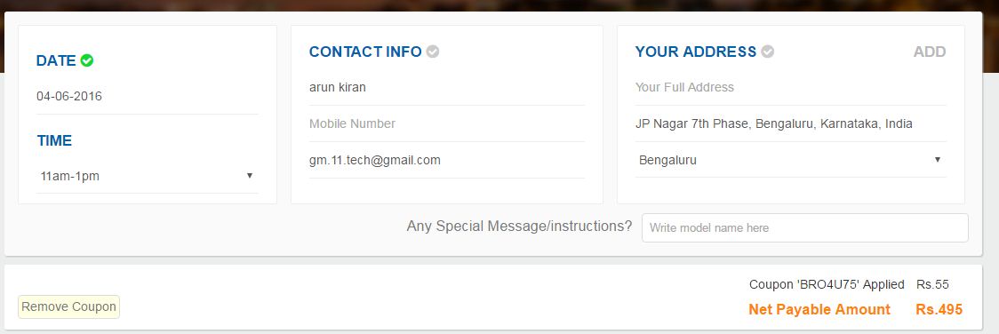 Other interesting services that you could avail through Bro4u.com consist of a colourful assortment of choices including Cakes and Flowers Delivery, Purohit Services, Mobile & Tablet Repairs, On Demand Bike Service, Yoga & Meditation Classes, Physiotherapy at Home and Personal Fitness Training, among others. Please share this Bro4u discount coupon page on your social media profiles.