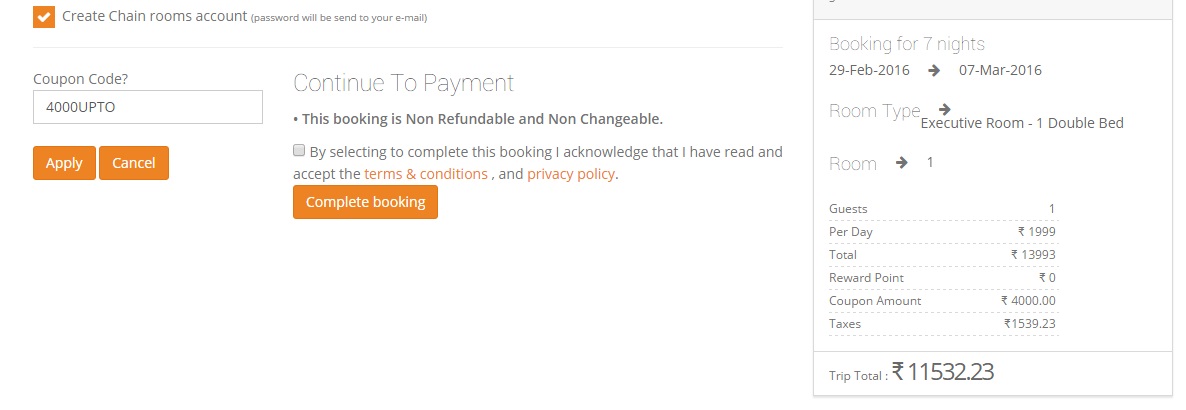 Chain Rooms Coupons - Rs.4000 OFF Tested on 18th Feb, 2016