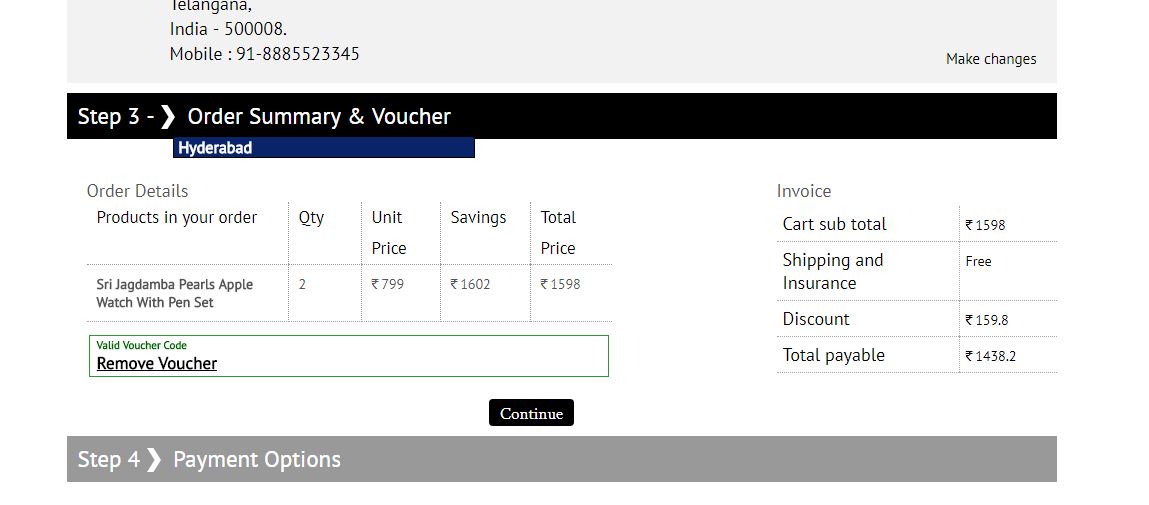 - The other way is to click on "Show PromoCode" link. You will be taken to a page where the voucher code is displayed. Copy it and enter it on JPearls online shopping site when you purchase the product(s).