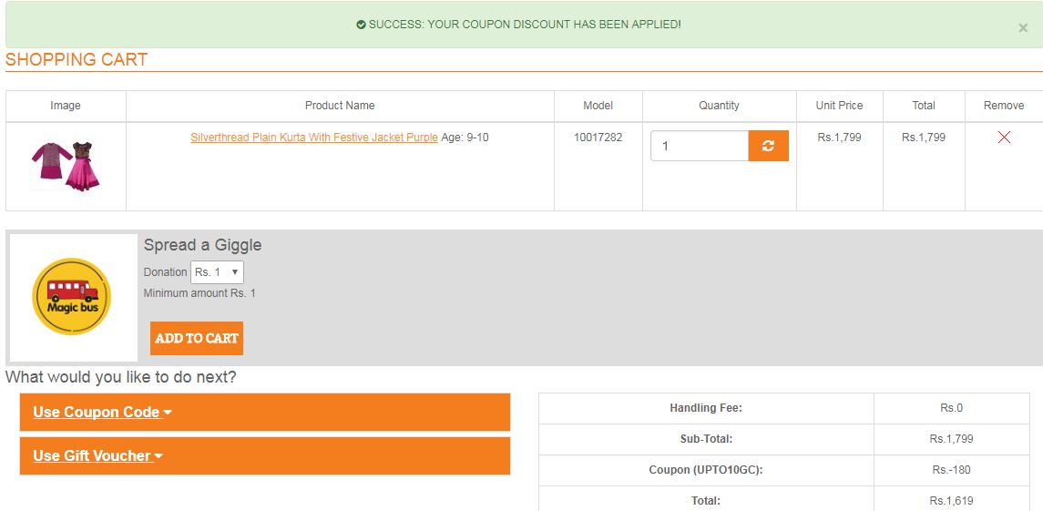 Your child can enjoy a fantastic selection of books at GiggleGlory.com. The choice is diverse and exquisite. They have activity books that help learn & develop skills, art books for drawing & painting and a large collection of Comics, Fairytales, Folktales, Mythologies, Fiction, Encyclopaedias, History & other Knowledge-based Books, Biographies and more. Fun and Learning CDs/ DVDs are also available. In the Stationery Section, they sell everything from Art-related Products, Pens, Pencils, Markers & Sketches to Classroom Essentials, Globes & Maps, School Utilities, Storage & Organization Basics and many others. Please share this GiggleGlory discount coupon page on your social media profiles.
