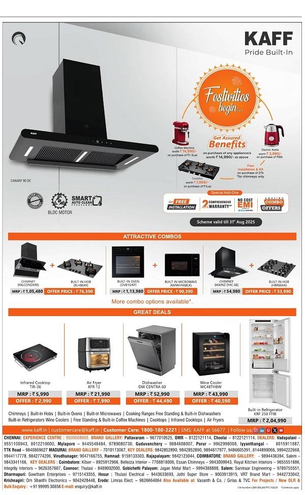 Chennai also has the finest of Salons and Spas with known names like Naturals, Lakme, Marie Claire, Strands, VURVE Signature Salon, Limelite, L’orange Unisex Salon And Spa, Style Mantra, Panache Salon And Spa, White Wingz Unisex Hair And Beauty Salon, Spa – O2 Spa, Aura Spa, Jiva Spa, Mantra Bali Spa, Spa Influence, Footworks Foot Reflexology, Sowkhya Ayurvedic Spa, Antahpura Spa and Willow Spa. Along with being a cultural avenue, Chennai also brings to you some of the loveliest beaches. For those looking for a quiet time off from the havoc of city life, try out some revered resorts like Mango Nest Nature Resort, Ideal Beach Resort, Silver Sands Resort, Golden Sands Beach Resort, Green Coconut Chennai Resort, Hudson Resort, V G P Golden Beach Resort, Country Club Jade Beach Resort, Sea La Vie Cove long Beach Resort, Mamalla Beach Resort, MGM Beach Resort and more that give you a whiff of these beautiful shores. Furthermore, if you are a foodie and love trying out new interesting cuisines, Chennai is the ideal venue bringing to you some amazing restaurant options such as The Reef, Willows, Sunset Grill, Pan Asian, Hamsa, Gossip Bistro, The Brick Oven, China XO, Paprika Café, Peshawari, Prive Restaurant and many others. Click here for best deals in Chennai. Visit Kaff Showrooms and Store outlets in Chennai and benefit from the ongoing Sale Offers.