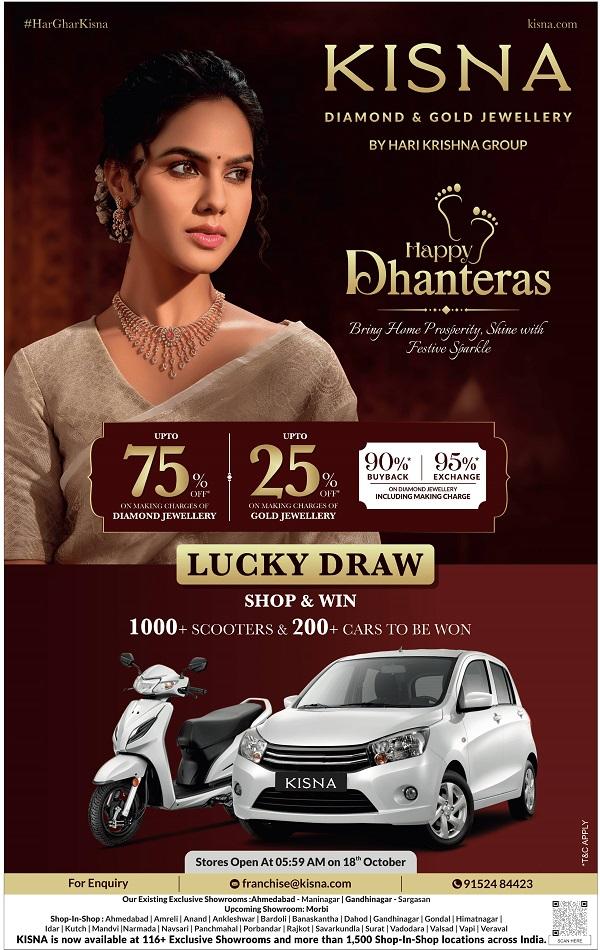 If you are on the lookout for some trustworthy salons and spas, check out places like Innocent Premium Beauty Salon, Shades Of Blackk Spalon, BeLLezza – The Salon, Darshan, Rock Style Studio, Jawed Habib, Black Rose Hair & Beauty Salon, Aurum Spa & Salon, Latest Salon, Prakrutik Spa, Aadi Spa, O2 Spa, Health Mantra Spa, Aurum Spa and Salon and Ananta Spa that are highly celebrated. You can also taste some exclusive delicacies at their restaurants like R Kitchen, Barbeque Nation, Rajwadu, Atithi, Agashiye, New FreezeLand, China House, MoMo Café, Tinello, Bayleaf, Essence, The Square, Twisted Roots, 650 – The Global Kitchen and Timpani, to name just a few. But if your intention is for a complete revival of spirit, it would do you good to take a vacation at one of the renowned resorts in and around the city. Some names like Belvedere Golf & Country Club, Kensville Golf & Country Club, Gulmohar Greens Golf and Country Club Ltd, Radhe Upavan Resort, Narayani Farms And Resorts, Whistling Meadows Resorts And Lawns and Greenwoods Lakes Resort & Spa are extremely popular. Visit Kisna Diamond and Gold Jewellery Showrooms and Store outlets in Ahmedabad and benefit from the ongoing Sale Offers.