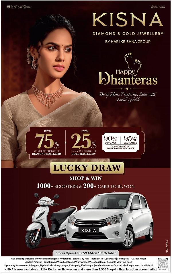 Hyderabad is well-known for shopping, be it elite brands or budget buys. There are, of course the big malls & shopping centres such as the Inorbit Mall (Hi-tech City), Sarath City Mall (Gachibowli), Forum Mall (Kukatpally), Big Bazaar (Abids, Musheerabad, Begumpet), GVK One (Banjara Hills), City Centre (Banjara Hills), Hyderabad Central (Punjagutta), Landmark (Begumpet), Lifestyle (Greenlands) and many more, that sell the latest in Indian and international brands. At the same time, one should not miss popular shopping sites as well such as Koti, Abids, Basheer Bagh, Nampally, Begum Bazar, General Bazaar, Laad Bazar, MG Road etc. Find the best of discounts, offers and sales out here for all kinds of goods. You will also find here, a number of renowned salons and spas such as Mirrors, Bubbles, Jawed Habib, L’Oréal, Naturals, O2, Tattva, The Spa at Hyatt, Serena Spa at Radisson Blu and Meghavi Wellness Spa. If you are particular about the food you eat and love exploring unique cuisines, their list of restaurants will excite you. Deccan Pavilion, Dakshin, Minerva, Blue Fox, Orchid, Haiku, Bawarchi, Paradise, Bikanerwala, Yi Jing, Ottimo Cucina Italiana, Barbeque Nation and Thai Pavillion are just a few among their multitude of culinary options. Stay over and relax at more than 30 of their fascinating resorts including Pragati, The Golconda Resorts & Spa, Celebrity, Mrugavani Resort and Spa, Dhola-Ri-Dhani, Hidden Castle, Leonia Holistic, Songs of Earth, Alankrita and Palm Exotica. Click here for best deals in Hyderabad Visit Kisna Diamond and Gold Jewellery Showrooms and Store outlets in Hyderabad and benefit from the ongoing Sale Offers.