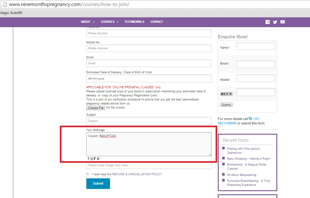 Onsite Prenatal and Postnatal sessions are extremely useful and invigorating for mothers to be. At The Nine Months Pregnancy, you can, though various dynamic sessions, learn everything from breastfeeding, nutrition, labour & delivery, paediatrics, post-partum, caesarean birth and father’s role through pregnancy to the well-known Lamaze Breathing Techniques effortlessly. You can also become an expert in understanding your child, breastfeeding issues, settling the baby’s sleep pattern, introducing solids to the baby, baby recipes, how to deal with the dreaded tooth fairy, weaning techniques and more. Please share The Nine Months Pregnancy Discount Coupon page on your social media profiles.