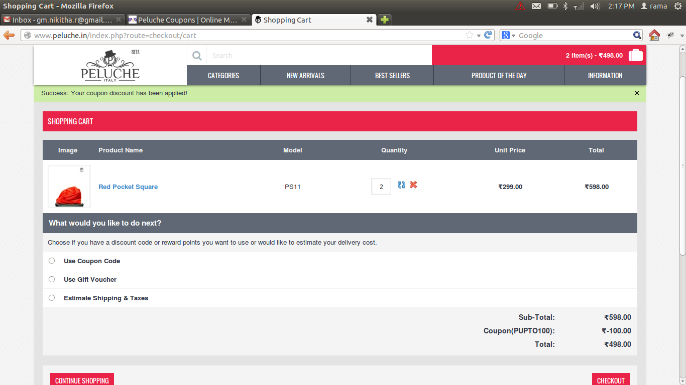 Rs.100 OFF Discount Coupon Tested on August 4th, 2014
