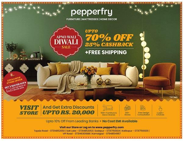 Foodies can check out amazing deals and offers at restaurants like Oh! Calcutta, 6 Ballygunge Place, Kewpie’s Kitchen, Arsalan Restaurant, Kolkata Street Food: Deckers Lane (James Hickey Sarani), Nahoum and Sons, Nizam’s, Flurys, Bhim Chandra Nag, Ganguram Sweets, Yauatcha, Zen - The Park, West View Bar & Grill - ITC, ThreeSixtyThree - The Oberoi Grand, Aaheli - The Peerless Inn, Capella - Altair Boutique Hotel, La Cucina - Grand Hyatt Regency, Club Fenicia, Pa Pa Ya and many others. Kolkata has several resorts as well that offer great variety and this comprises of names such as Fortune Park, Palm Village, Vedic Village Resort, F Fort Resort, Floatel and Country Roads, among others. For amazing deals on Salons and Spas, you can check out Jawed Habib, Shaan Khan Hair Designer Salon, Colors Hair & Beauty Spa Saloon, Habib’s Hair & Beauty Saloon, Blue Haven Salon, Lumi Salon & Skin Clinic, Unique Zam Zam Style Junction Saloon, Fahrenheit Unisex Salon, The Thai Spa, The Oberoi Grand Spa, Aura Spa, Kaya Kalp Spa, Sanjeeva Spa, Swissotel Spa and Keya Seth Spa, to list a few. Visit Pepperfry Showrooms and Store outlets in Kolkata and benefit from the ongoing Sale Offers.