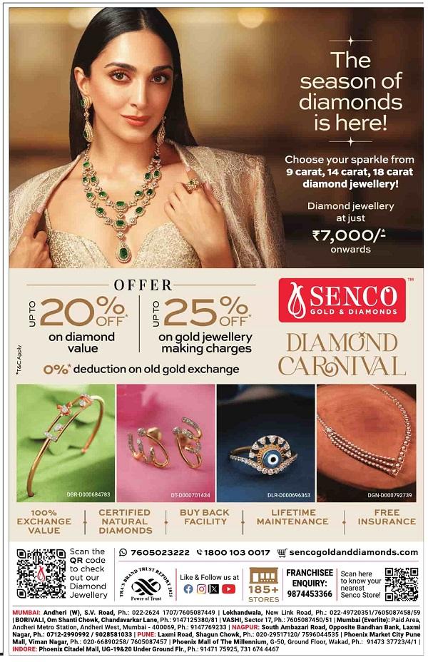 With a tropical climate and some of the finest of beaches, hill stations & more around, this place is also well-known for its nature resorts. Some names include Della Resorts, Levels Resort, Silverador Resort Club, The Resort and others. Food lovers can explore delicacies from all over the globe through its plethora of restaurants including Tamasha, Bayroute, Wasabi By Morimoto, Tanatan, Peshwa Pavilion, The Earth Plate, Fifty Five East, East Asian Spice Trail, 180 Degrees, Ark Bar, Mostly Grills and more. Well, wherever you go with your loved ones, you can look cool and chic with their fantastic list of salons and spas like Juice Salon, Savio John Pereira, Kromakay Image Salons, Lakme, Jen Claude Beguine, BBlunt, Mad O Wat, Jawed Habib, Moksham – The Fusion Spa, Metta Reflexology Spa, The Palms Spa, Spa la Vie by L'Occitane, Spa by JW, Quan Spa, Club Oasis Spa and Heavenly Spa by Westin, among others. Click here for best deals in Mumbai Visit Senco Gold and Diamonds Showrooms and Store outlets in Mumbai and benefit from the ongoing Sale Offers.
