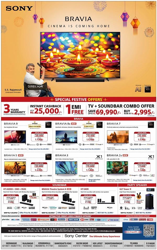 You will come across some delightful salons and spas out here as well and this includes well-regarded names including Invogue, Bounce Salon And Spa, Salon Squeeze, Hair Speak Family Salon, Soul Salon, Play Salon, BBlunt, Chrysolite Salon, Collette, Flirty Scissors, Limelite Salon, Lakmé Salon, Jean Claude Biguine, Bodycraft Spa & Salon, O2, Elements Spa, Meraki Spa & Wellness, Body Raaga, SPA.ce the Spa, Angsana Spa and Jiva Spa, to mention a few. For food enthusiaists, restaurants like Arirang Korean Restaurant, The Modak, Combos Kitchen, Truffles, Leon Grill, AB’s, Le Arabia, The Hole in the Wall Café, Fenny’s Lounge & Kitchen, The Fatty Bao, Ssaffron, JW Kitchen, Alto Vino, Kebabs & Kurries, Karavalli, Alba, Feast and others are perfect to experience exquisite flavours from across the world. Then there are the luxurious resorts like Holiday Village, Royal Orchid Resort & Convention Centre, Fiestaa Resort-n-Events Venue, Chairman’s Resort, Clarks Exotica Convention Resort & Spa, Angsana Oasis Spa & Resort, Ramanashree California Resort Bangalore, Our Native Village Eco Resort, Shreyas Yoga Retreat and many more where you could just unwind and rejuvenate in order to face the complexities of life with new vigour! Click here for best deals in Bangalore. Visit Sony Center Showrooms and Store outlets in Bengaluru and benefit from the ongoing Sale Offers.