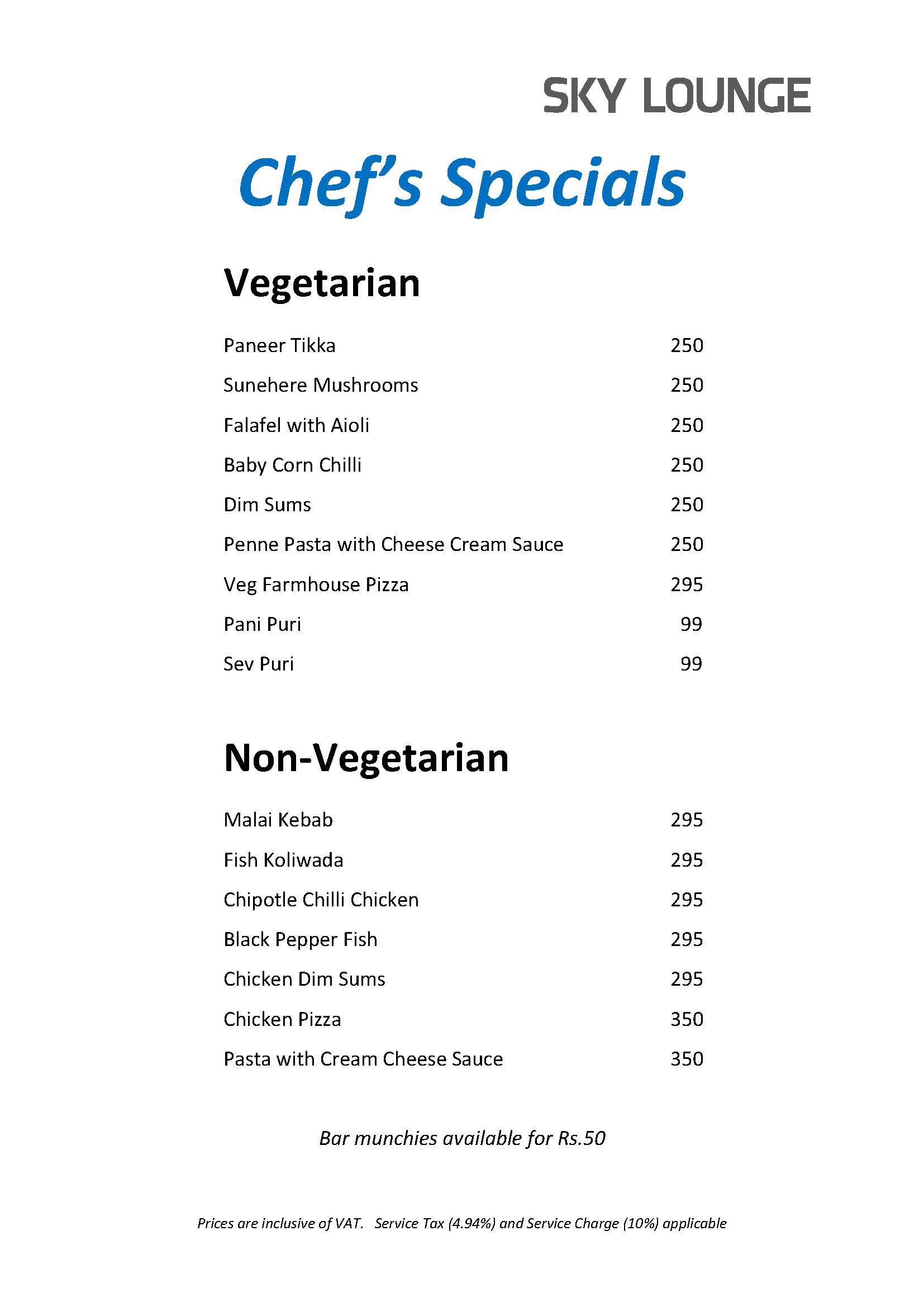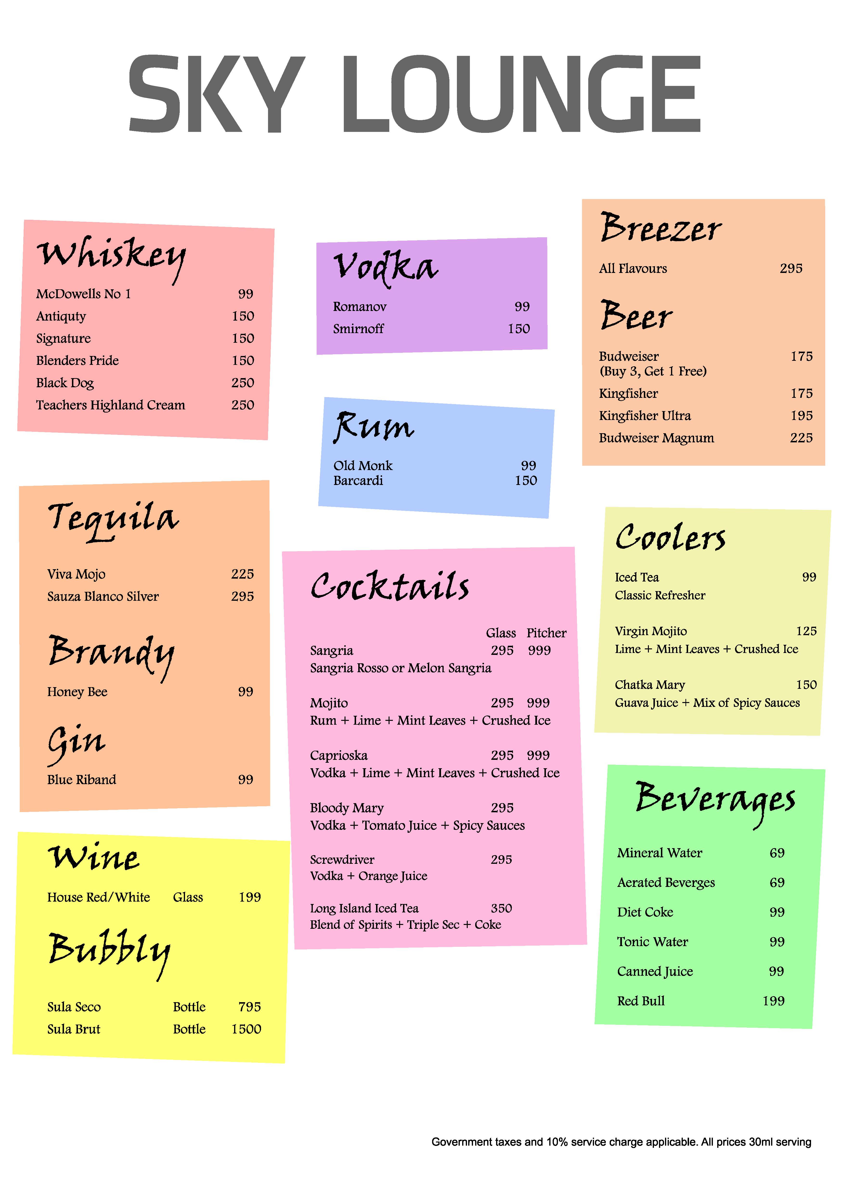 The Soul Sky Lounge has a fantastic menu of delightful tandoori kebabs, hot dim sums, wood-fired oven pizzas, live grill, oriental stir fries, handcrafted pastas and much more. They are authentic, fresh and great companions for your drink. Find here, a wide array of Indian, Continental and Oriental specialties that will take your breath away!