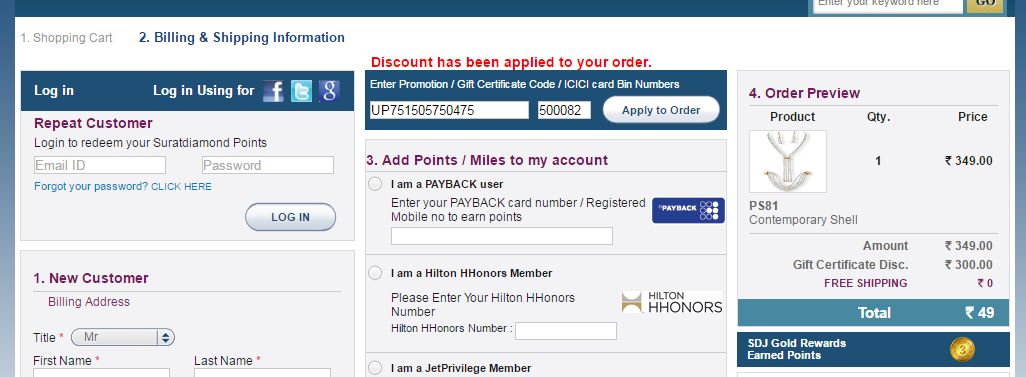 - The other way is to click on "Show PromoCode" link. You will be taken to a page where the voucher code is displayed. Copy it and enter it on Surat Diamond online shopping site when you purchase the product(s).
