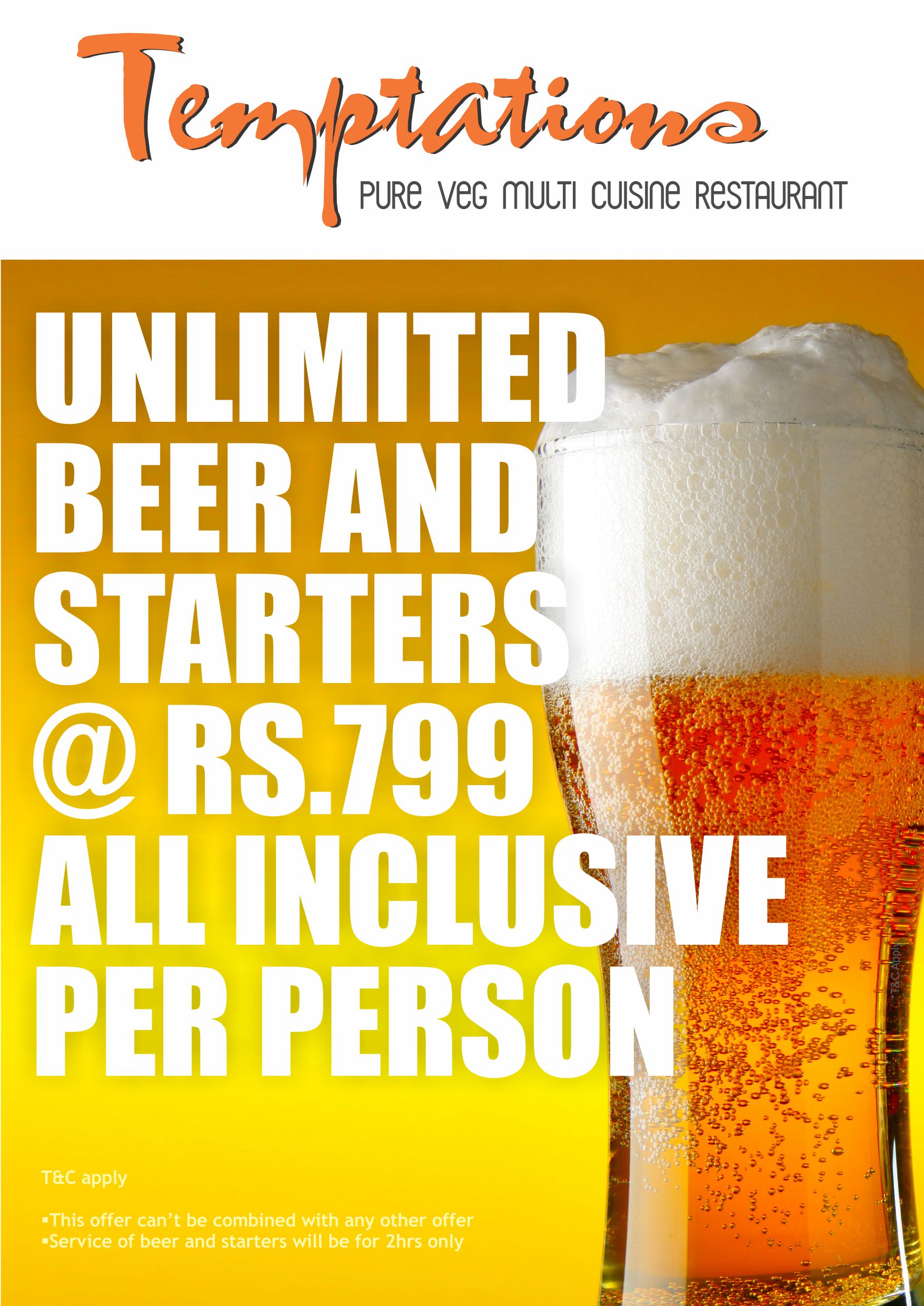 Unlimited Beer and Starter Service will be for 2 hrs only.