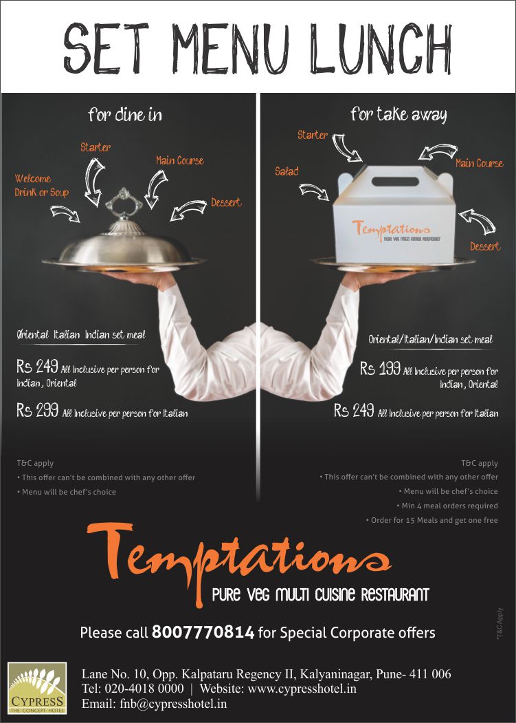 At Temptations, begin with some classic soups like Tom Yum, Manchow and Sweet Corn. Move on to enjoy some lovely starters too like Spring Rolls and Wontons. Last, but not the least, choose from their grand list of Oriental Vegetarian Main Course Delights which include Babycorn Chilli, Thai Curry served with Rice, Veg Fried Noodles, Nasi Goreng, Chinese Greens in choice of sauce and many more. Each and every dish you taste would amuse you and tempt you to return for more. Don't forget to download Temptations Discount Coupons from UPto75.com