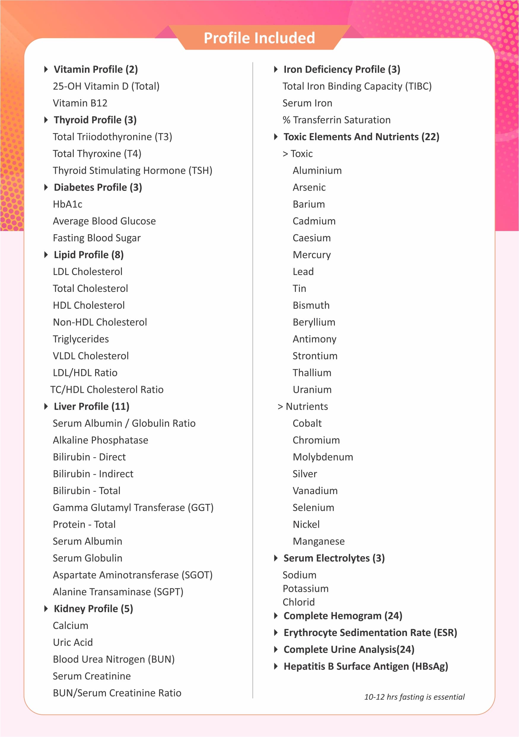 This Limited Period Aarogyam Dual One Plus One Profile is Pure Value for Money with all major tests included.