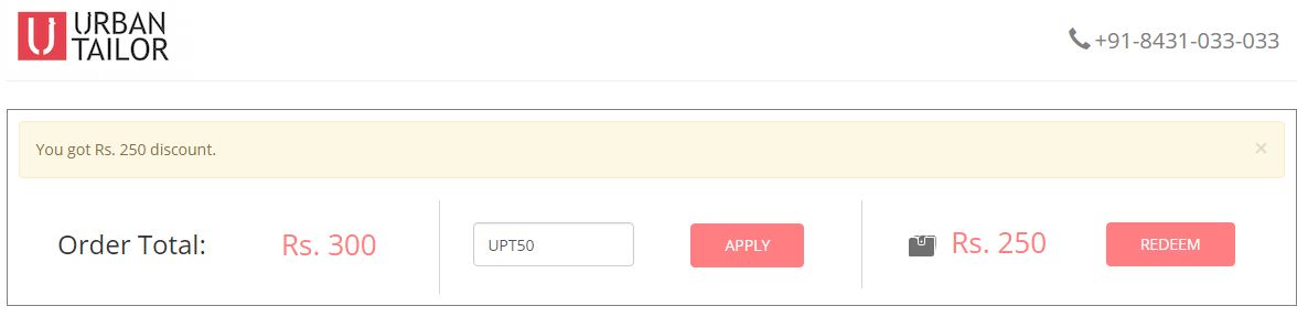 - The other way is to click on "Show PromoCode" link. You will be taken to a page where the voucher code is displayed. Copy it and enter it on Urban Tailor online shopping site when you purchase the product(s).
