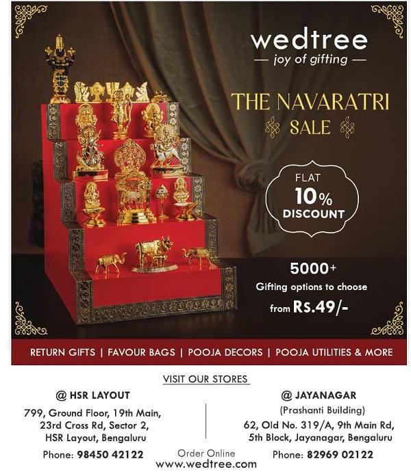 You will come across some delightful salons and spas out here as well and this includes well-regarded names including Invogue, Bounce Salon And Spa, Salon Squeeze, Hair Speak Family Salon, Soul Salon, Play Salon, BBlunt, Chrysolite Salon, Collette, Flirty Scissors, Limelite Salon, Lakmé Salon, Jean Claude Biguine, Bodycraft Spa & Salon, O2, Elements Spa, Meraki Spa & Wellness, Body Raaga, SPA.ce the Spa, Angsana Spa and Jiva Spa, to mention a few. For food enthusiaists, restaurants like Arirang Korean Restaurant, The Modak, Combos Kitchen, Truffles, Leon Grill, AB’s, Le Arabia, The Hole in the Wall Café, Fenny’s Lounge & Kitchen, The Fatty Bao, Ssaffron, JW Kitchen, Alto Vino, Kebabs & Kurries, Karavalli, Alba, Feast and others are perfect to experience exquisite flavours from across the world. Then there are the luxurious resorts like Holiday Village, Royal Orchid Resort & Convention Centre, Fiestaa Resort-n-Events Venue, Chairman’s Resort, Clarks Exotica Convention Resort & Spa, Angsana Oasis Spa & Resort, Ramanashree California Resort Bangalore, Our Native Village Eco Resort, Shreyas Yoga Retreat and many more where you could just unwind and rejuvenate in order to face the complexities of life with new vigour! Click here for best deals in Bangalore. Visit Wedtree Showrooms and Store outlets in Bengaluru and benefit from the ongoing Sale Offers.